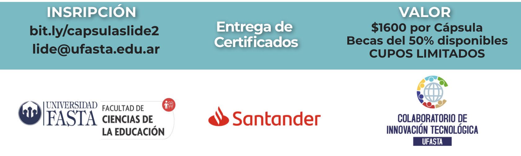 El costo de esta actividad es de $ 1600. Gracias al aporte de la Universidad y de nuestro main sponsor, se dispone de becas al 50% para docentes.